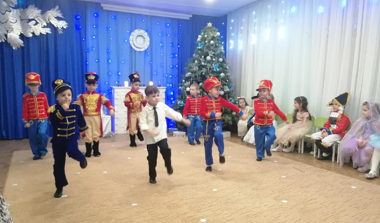 Сказка "Щелкунчик" в старшей группе "Непоседы" стала настоящим театральным представлением. Ребята перевоплотились в героев сказки. здесь были и куколки, и снежинки, и солдатики, и Мари с Францем, и Щелкунчик, который победил Мышиного Короля и стал принцем. Дед Мороз со Снегурочкой тоже помогли ребятам, с помощью волшебства зажгли огоньки на елочке. Представление получилось волшебным, сказочным и ярким!